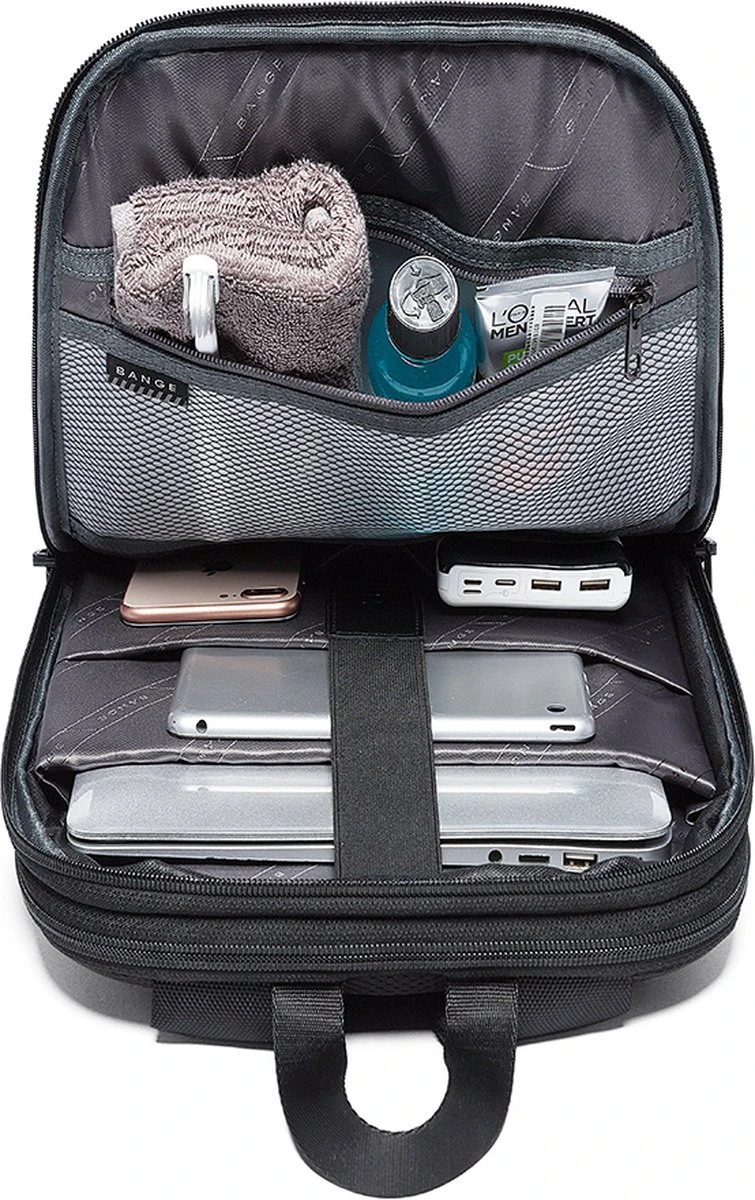 De Bange rugzak beschikt over een hoofdvak waarin veel boeken, kleding of andere voorwerpen kunnen worden opgeborgen. Het gevoerde laptop vak kan probleemloos 16 inch laptops bevatten. Kleine binnenzakken bieden plaats aan telefoons, tablets, pennen, sleutels, kaarten en meer.