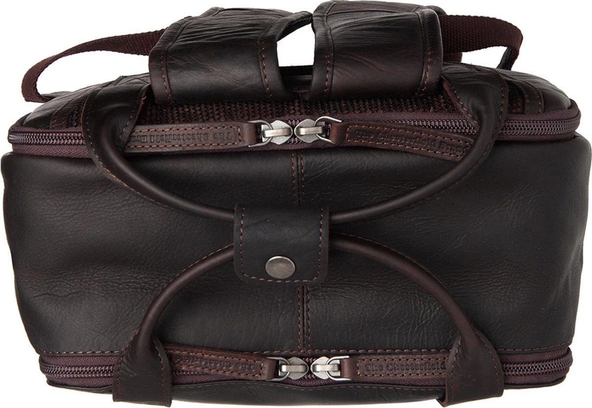 Rugzak uit de Belford serie van Chesterfield. De Belford serie van Chesterfield is gemaakt van hoogwaardig Wax Pull-up leer. Wax pull-up leer wordt gekenmerkt door een zachte en soepelere structuur. Het hoofdcompartiment is ruim ingedeeld met gevoerd 15.4 laptop (36×27 cm) en gevoerd tablet vak. Ook geschikt voor A4 materiaal met intern rits-en meerdere steekvakken. Ruim georganiseerd voorvak met ritssluiting.