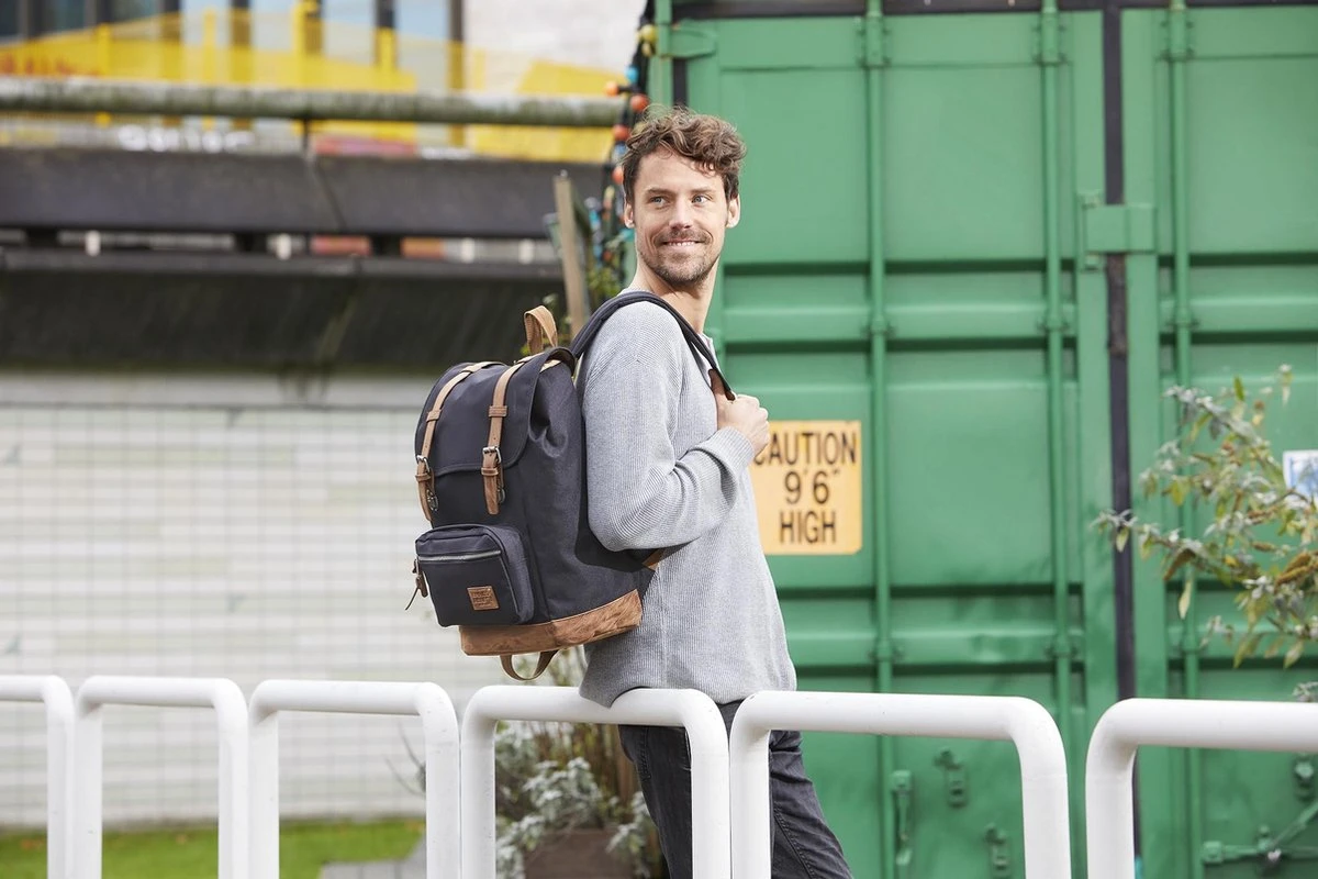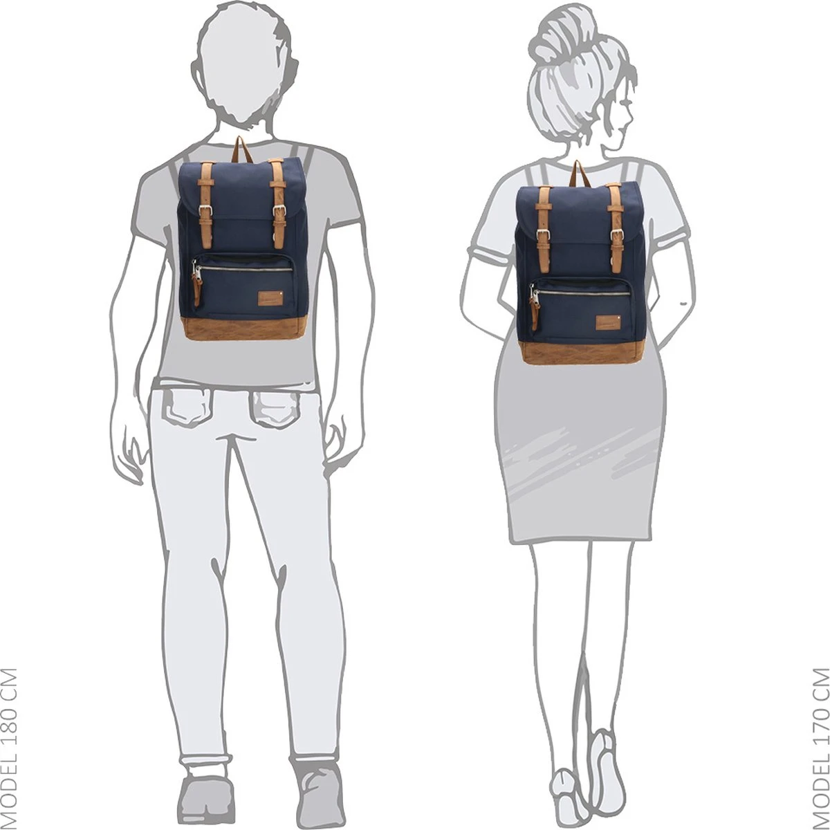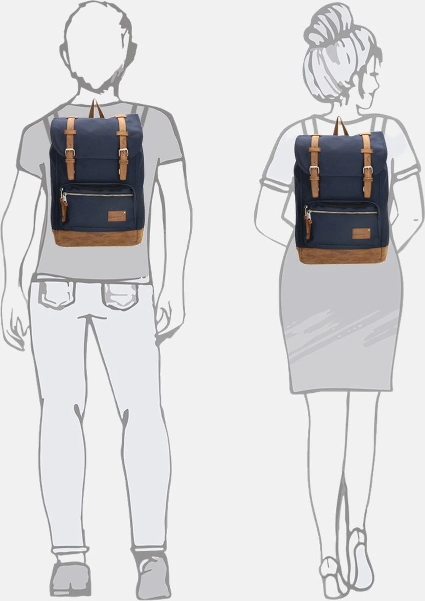 Deze stoere rugtas uit de Santiago serie van Enrico Benetti heeft een echte outdoor look. Deze serie kenmerkt zich door het stevige polyester in basic kleuren óf camouflage print, gecombineerd met het bruine PU met ruwe uitstraling. De tassen zijn ideaal voor school, werk of gewoon elke dag. Deze grote rugak heeft een voorvak met twee ritsen. Onder de overslag met twee schuif gespen sluit de tas met een trekkoord en bevindt zich een ruim hoofdvak met laptopvak van 17″. Ook heeft de tas een veiligheids ritsvak op de achterkant. De tas is afgewerkt met leuke kunstlederen details, metalen hardware en verstelbare banden van bruin katoen.