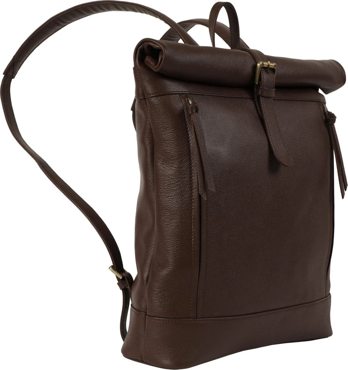 De Franklin rolltop heeft een vak met padding geschikt voor laptops t/m 15,6 inch. Aan de voorzijde zitten twee afzonderlijke vakken met hoogwaardige YKK ritsen. In de binnenzijde zit nog een vak voor bijvoorbeeld je portemonnee en een compartiment met rits. Opgerold is de Franklin ongeveer 44 centimeter hoog, 36 centimeter breed en 11 cm diep. De tas wordt gemaakt van zeer fraai buffelleer dat is behandeld met natuurlijke oliën. Over tijd zorgt dit voor een mooi patina, waardoor elke tas zijn eigen, unieke karakter krijgt.