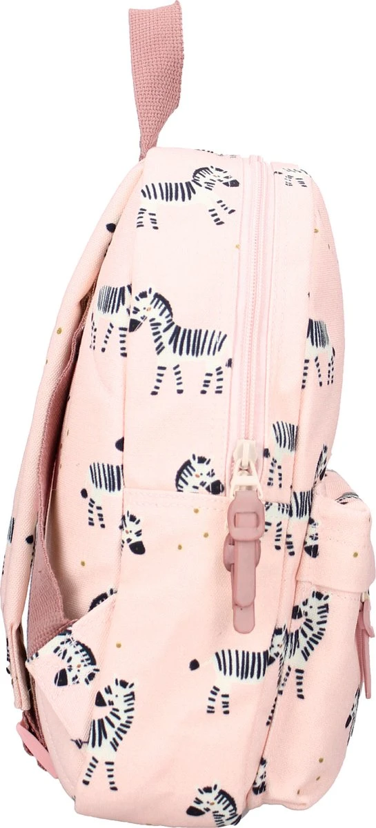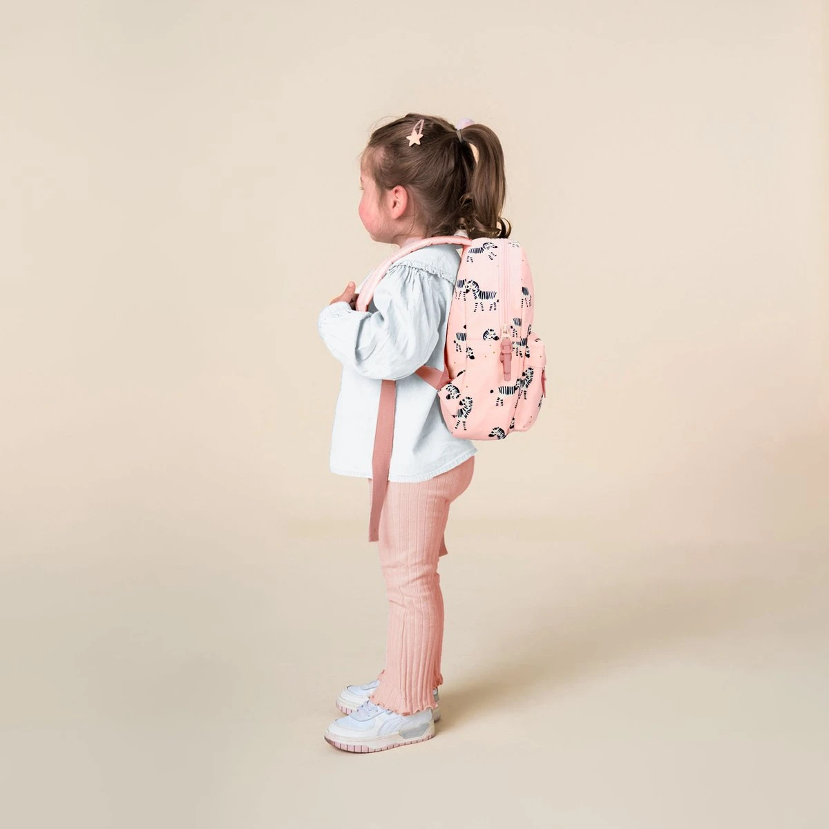Deze rugzak met zebras uit de To The Zoo collectie is een schattige rugtas voor jouw kleine dreumes. Door de leuke dierenprintjes is er voor ieder kind een perfecte tas. De rugtas is gemaakt van gerecycled polyester en elk ontwerp is voorzien van een van de leuke dierenkarakters. De tas heeft gewatteerde schouderbanden en een handvat om deze makkelijk ook zo te kunnen dragen. Aan de voorzijde is er nog een klein ritsvakje met een ritssluiting zodat jouw kind dit vak zelf gemakkelijk kan openen. Aan de binnenkant is een heel handig naamlabel zodat iedereen weet van wie deze trendy dierentas is.