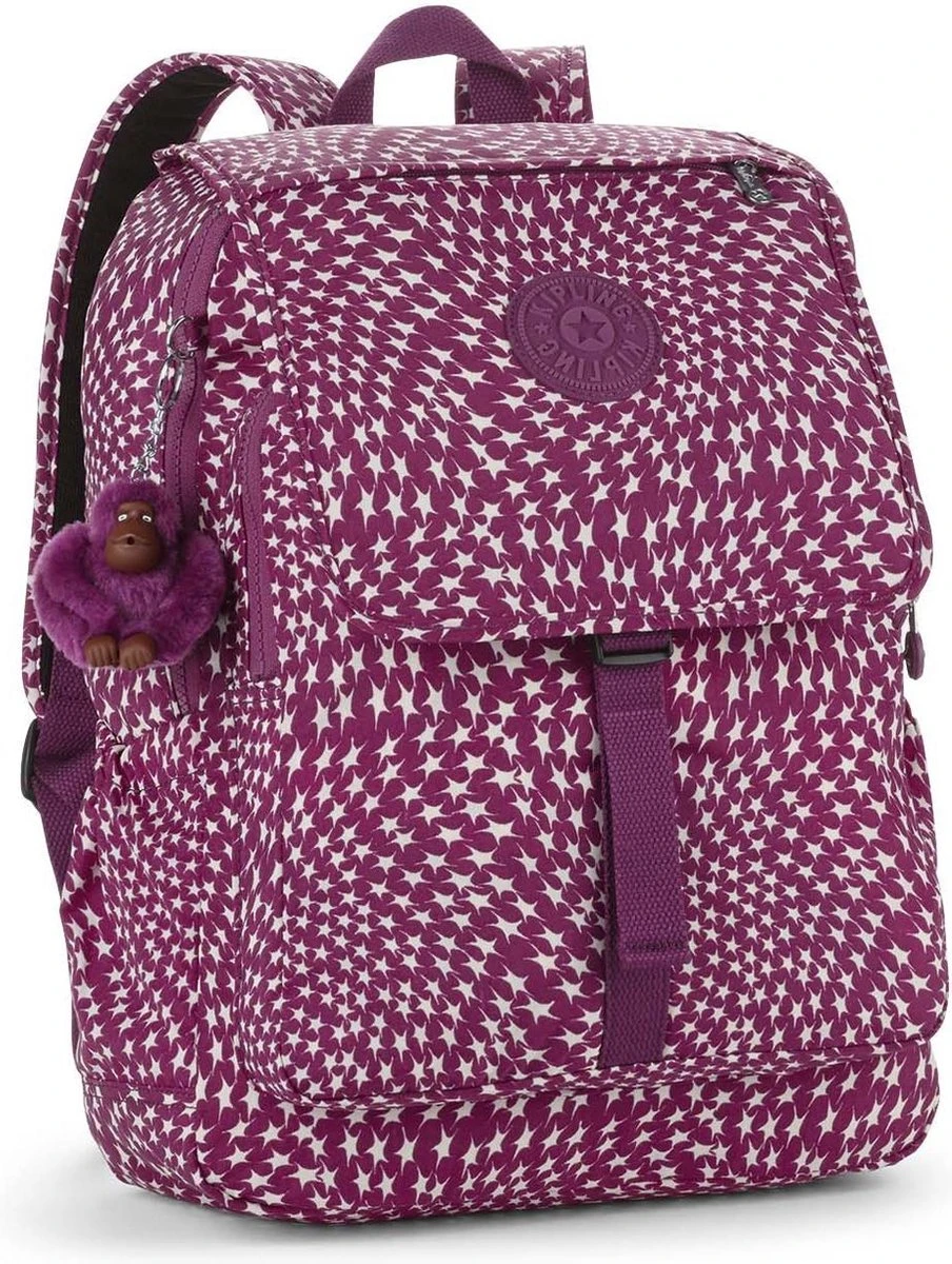 Haruko – Rugzak met laptopbescherming. De Haruko, duurzaam van buiten en ruim van binnen, heeft alles en is bovendien uitzonderlijk stijlvol. De Haruko met zijn speciale laptopcompartiment en tal van veelzijdige vakken heeft gewatteerde schouderriemen voor draagcomfort. • Gewatteerde en verstelbare schouderriemen • Draaglus bovenop • Het hoofdcompartiment met rits bevat een laptopvak met klittenbandsluiting en een gewatteerd paneel achter en onder Inhoud compartiment met rits aan de voorkant: • Pennenlussen • Steekzakken • Sleutelkoord met clip • Overslaande klep met clip en gesp en ritsvak voor het veilig opbergen van kleine voorwerpen • Steekvak aan de zijkant met elastische afwerking voor het opbergen van kleine voorwerpen, zoals een waterfles Waterafstotend, gekreukt en makkelijk te reinigen nylon Sleutelhanger met Kipling-knuffelaapje
