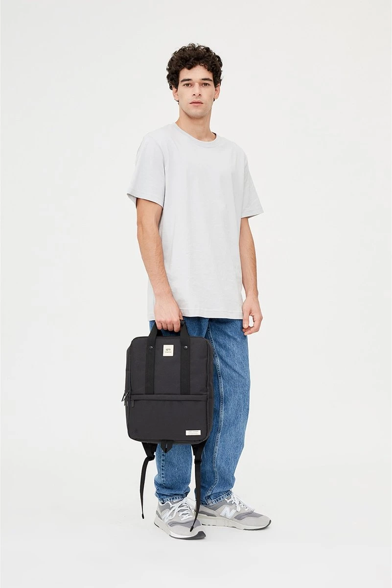 De Smart Daily Backpack van het merk Lefrik is een zeer mooie, ruime waterproof laptop rugzak. De rugzak is van eco friendly polyester dat gemaakt is van gerecyclede plastic flessen. Daarnaast heeft de rugzak een duurzame waterafstotende TPE coating gekregen. Hierdoor kan de tas tegen een stootje en blijven jouw eigendommen droog tijdens verschillende weersomstandigheden. De rugzak heeft twee ruime hoofdvakken met ritssluiting. In het achterste hoofdvak zit een gewatteerd laptopvak voor een 13,3 inch laptop of laptop van max. 24,5 x 33 cm. Ook zit in dit achterste vak een steekvak met zachte voering voor een iPad of tablet. In het voorste hoofdvak zit een organizer voor het overzichtelijk opbergen van kleine accessoires zoals pennen, notities, sleutels etc. Op de voorzijde zit een ruim ritsvak voor spullen die je snel bij de hand wilt hebben. Op de achterzijde zitten twee verstelbare en licht gewatteerde schouderbanden voor optimaal draagcomfort. Tevens zit op de achterzijde een smartsleeve waarmee je de rugzak over de stang van een trolley kunt schuiven. De rugzak heeft aan de bovenkant twee handvatten waardoor je deze tas ook als een gewone tas comfortabel in de hand kunt dragen.