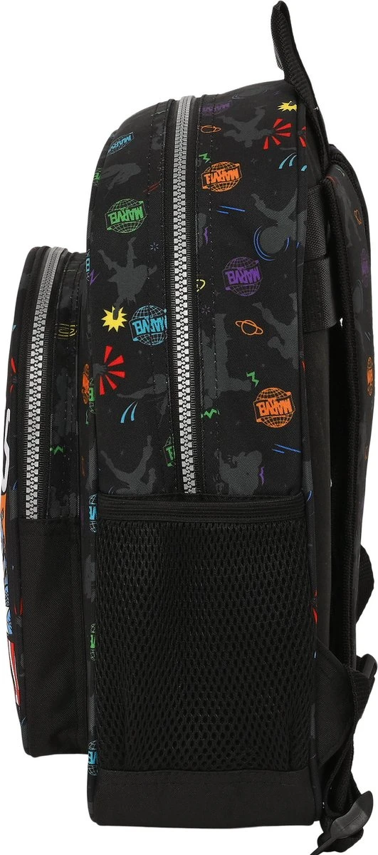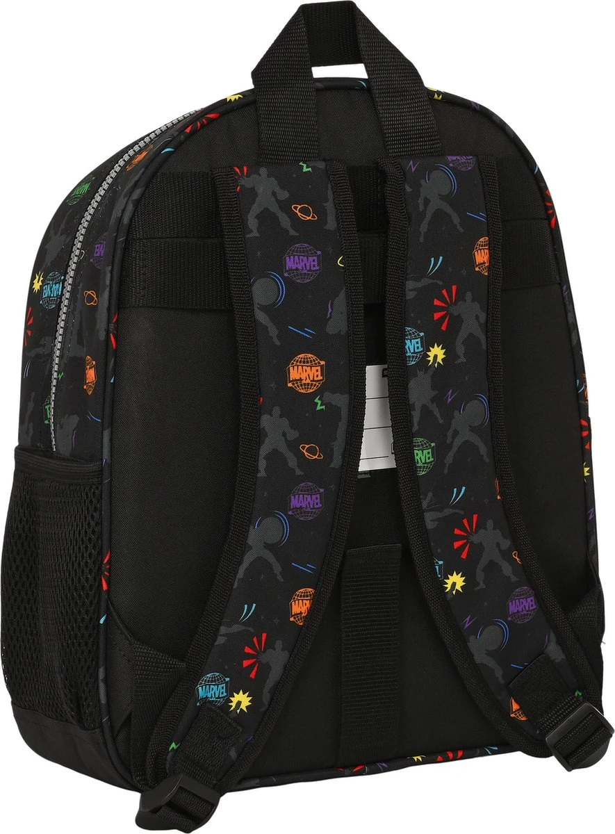 Marvel Avengers Rugzak, Super Heroes. Iron Man, Thor, Black Panther, Black Widow, The Hulk en Captain America; allemaal zijn ze vertegenwoordigd op deze stoere rugtas. Dé Marvel Avengers helden van dit moment! Welke is jouw favoriet? Deze tas heeft twee vakken met ritssluiting en een zijvak van mesh voor, bijvoorbeeld, een drinkbeker. Een ideale rugtas voor school of een dagje weg. Comfortabel te dragen door de gepolsterde en verstelbare schouderbanden. Een geweldig cadeau-idee voor een Avengers fan voor een verjaardag of de feestdagen.