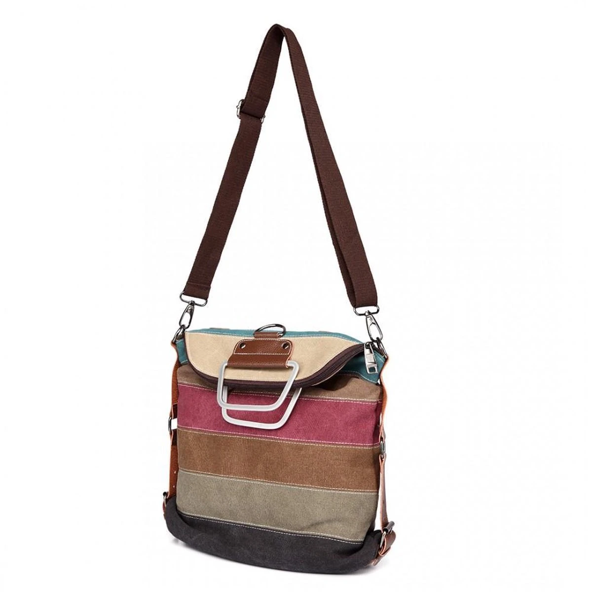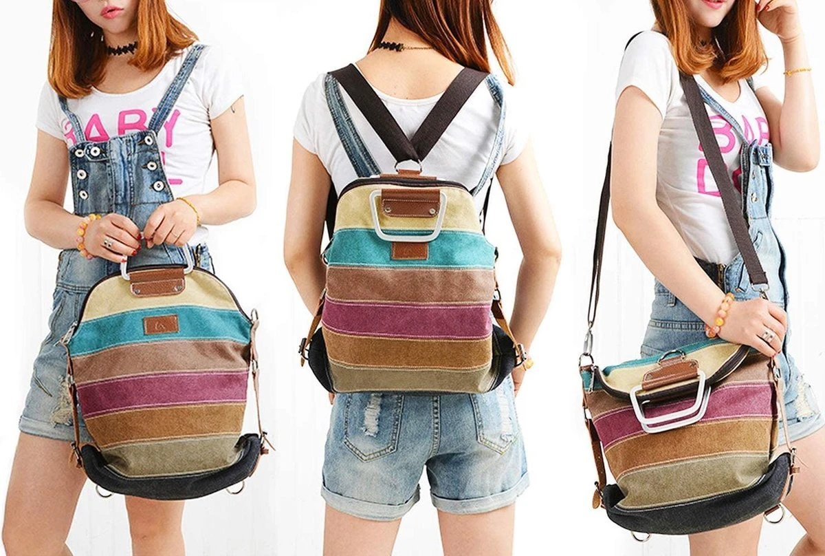 Deze tas is handig voor meerdere gelegenheden. Zo is deze tas het perfecte accessoire voor een dagje weg, maar ook voor dagelijks gebruik is hij ideaal. Je kunt deze tas perfect combineren met jouw casual outfits door de regenboogpatroon en het eenvoudige model. Daarbovenop is deze tas ideaal door de diverse vakken die in de tas zitten, zo kun jij jouw benodigdheden georganiseerd opbergen. De handtas heeft een overzichtelijke en praktische indeling met een ruim hoofdvak met ritssluiting. Binnenin bevindt zich 2 insteekvakken en een ritsvak. Wil jij de tas liever over de schouder dragen dan in de hand? Dat kan dankzij de verstelbare en afneembare schouderband.Door de afneembare schouderriem kan U kiezen om de rugtas als schoudertas of rugzak te dragen. Daarbovenop zijn de schouderbanden verstelbaar, waardoor het dragen van de rugzak zeer comfortabel maakt. De stijl is veranderlijk, eenvoudig en trendy.