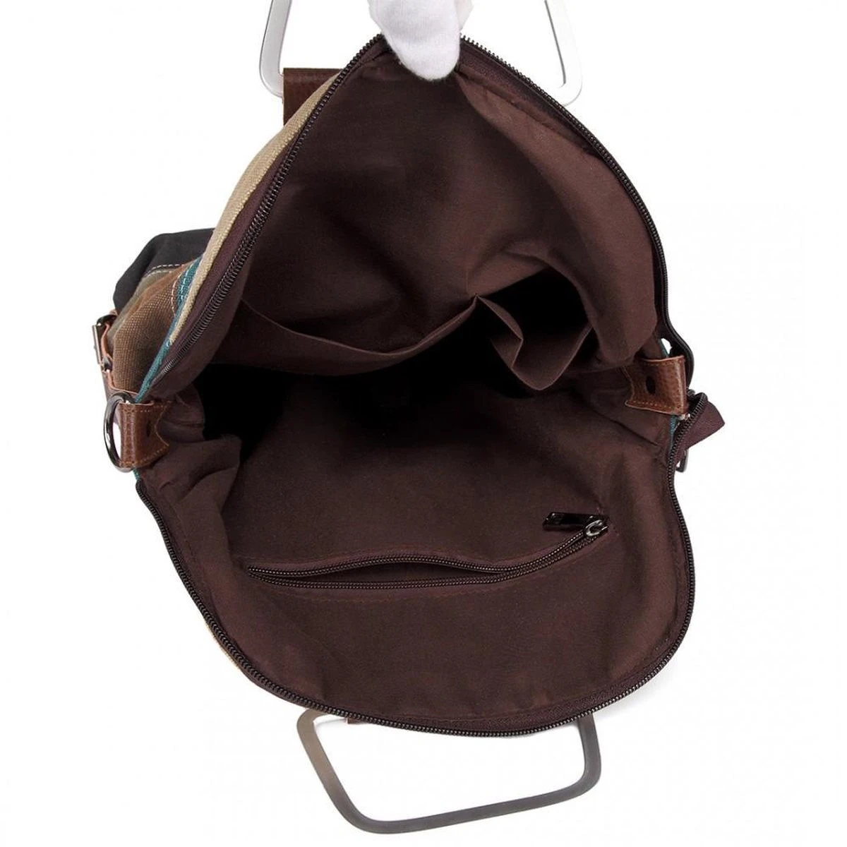 De rugzak heeft een ruim hoofdvak met ritssluiting. Wanneer U de rits openritst, zien we het ruime binnen compartiment. Hier heb je de beschikking over 2 insteekvakjes, een vakje met ritssluiting en natuurlijk het ruime hoofd compartiment. Hierin passen genoeg spullen zoals Ipad, paraplu, portemonnee, waterfles, boeken, snacks, cosmetica, enzovoort. Vertrouw me! Deze Miss Lulu rugzak is de beste keuze voor reizen en winkelen.