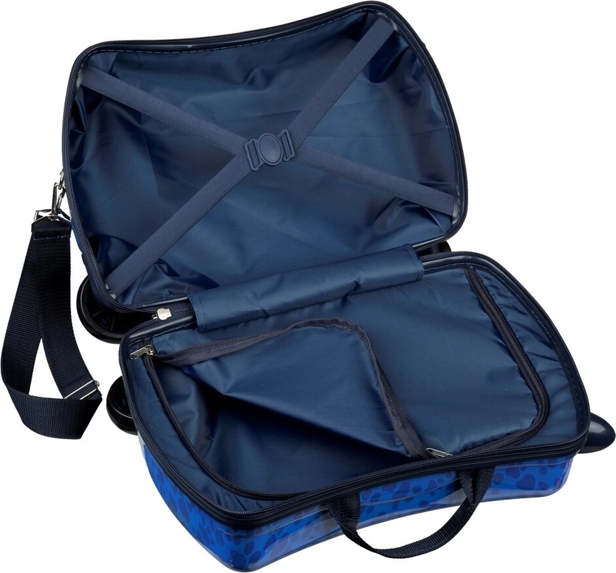 Stoere Paw Patrol ride-on trolley: superhandig voor op reis! Op deze koffer kan het kind tijdens de reis lekker zitten en meerijden met de rest van het gezelschap. Met praktische handvatten, schouderbanden, 4 wielen, 1 vak met spanriem en een vak met rits. Afmetingen: 42 x 21 x 33 cm.