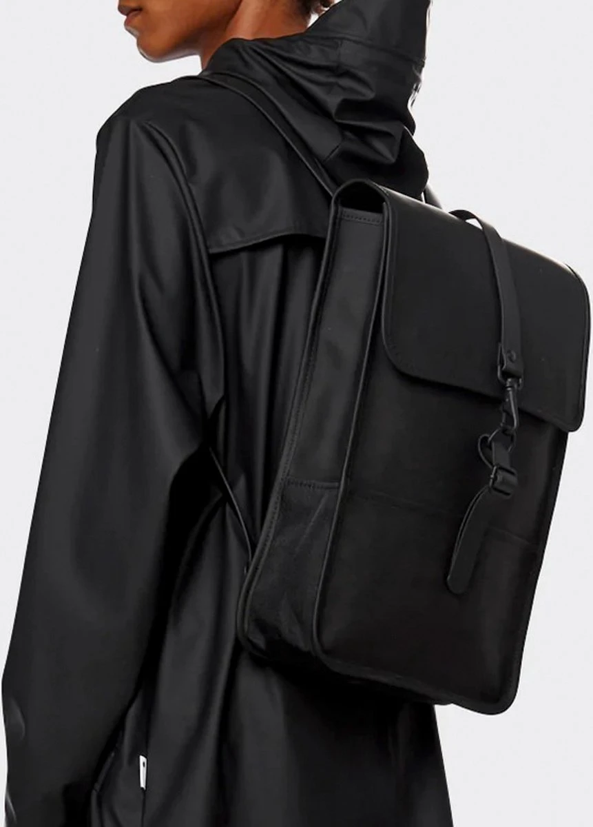 De Mini Rugzak is een kleinere versie van de originele Rains Rugzak. Deze minimalistische rugtas is gemaakt van een waterbestendige stof, waardoor jouw spullen altijd droog blijven. De rugzak beschikt over een laptopvak en een ruim hoofd compartiment waar je veel spullen in kwijt kunt. Daarnaast heeft deze tas aan de achterkant een verborgen ritszak, wat handig is voor bijvoorbeeld het opbergen van je telefoon.