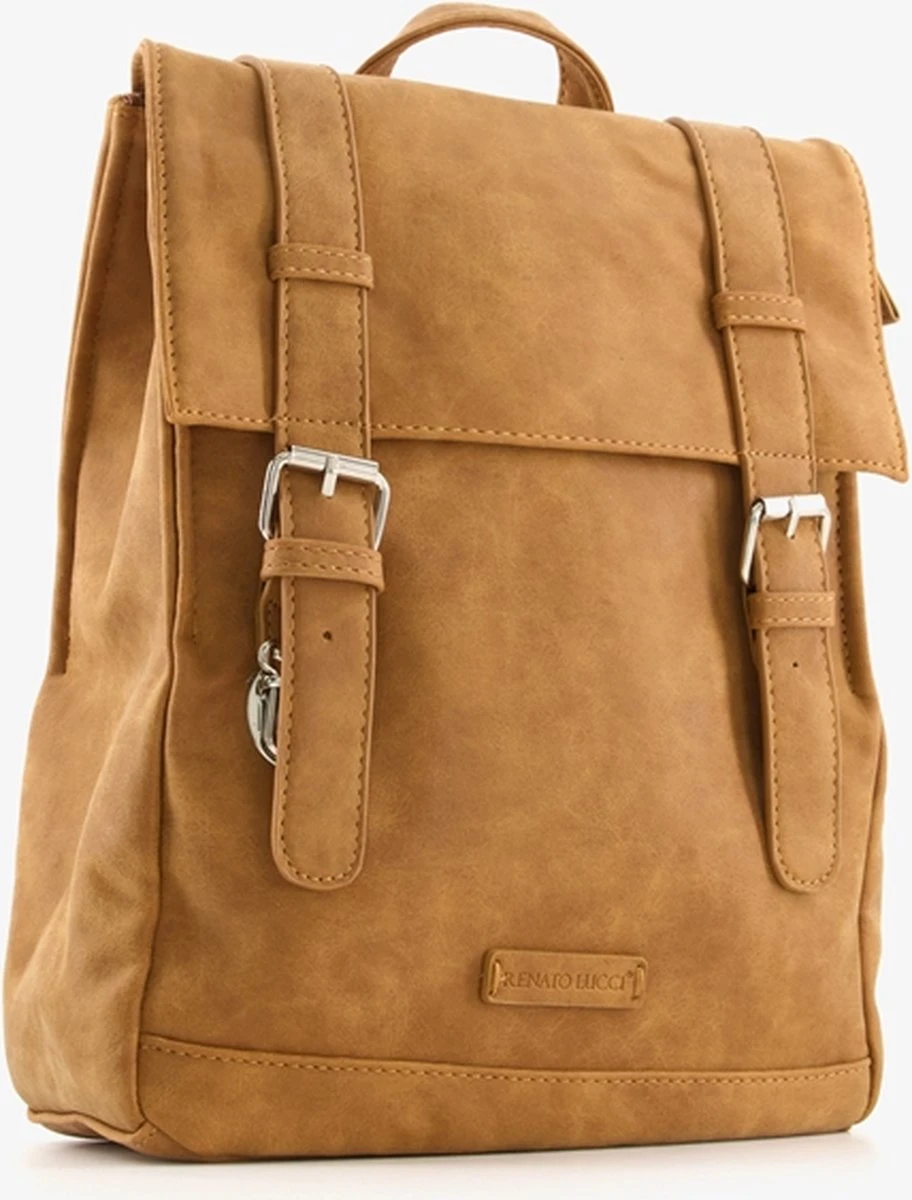 Bruine rugzak voor dames uit de Renato Lucci collectie. Voorzien van een stevige draag/ophanglus en verstelbare schouderbanden. Aan de achterzijde zit een vakje met ritssluiting. De rugzak heeft een groot vak waar je grotere voorwerpen in kunt opbergen. Gemaakt van imitatieleer. Afmetingen: 24 x 11 x 30 cm.