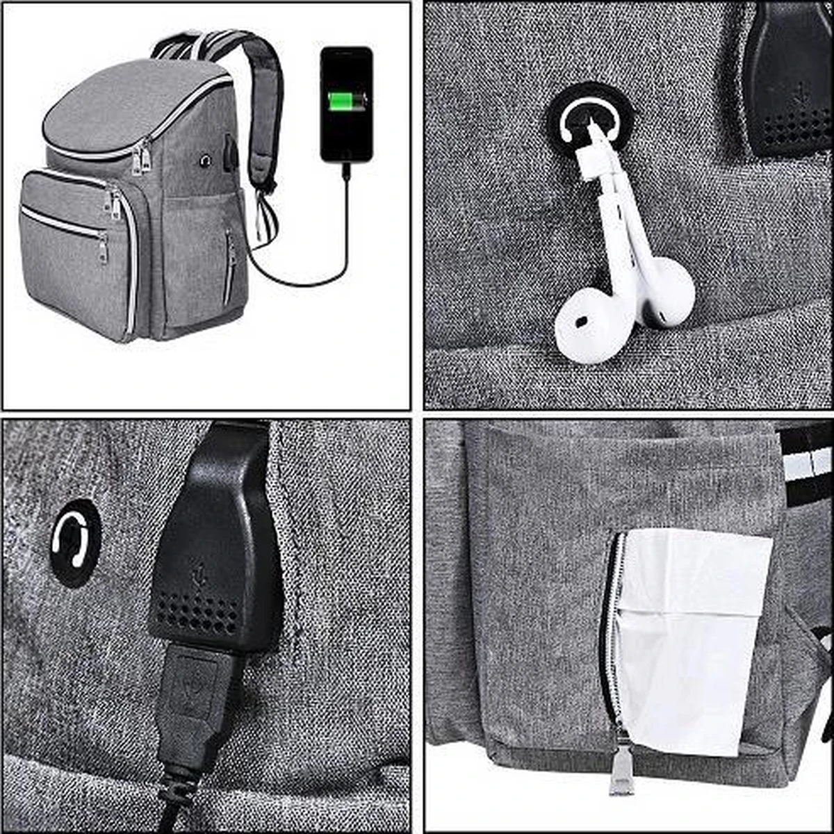Pakket bevat: 1 rugzak luiertas + 1 zwarte USB-kabel voor de USB-laadaansluiting + 1 fles geïsoleerde koeltas + 1 waterdichte luierpad
