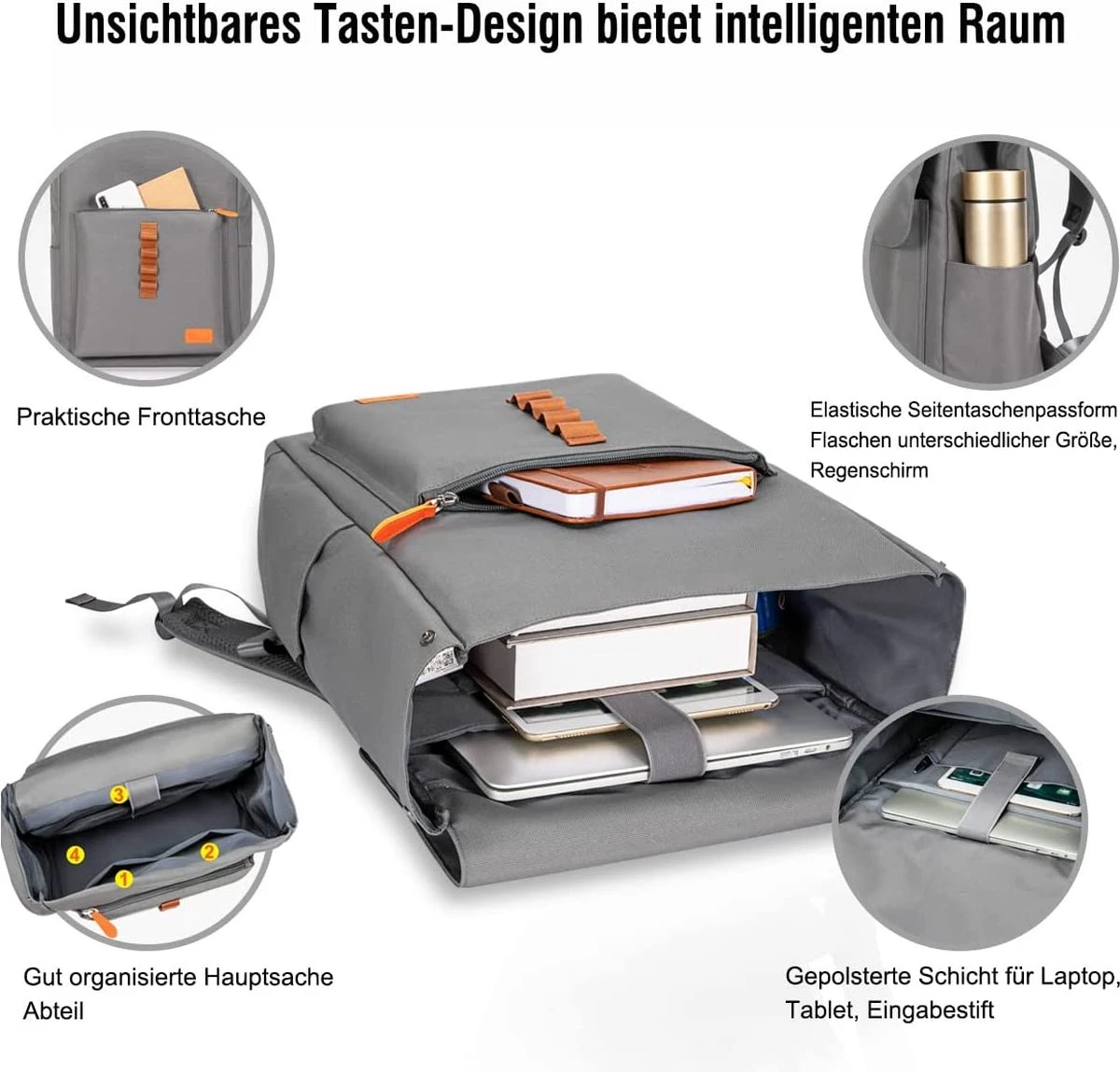 Ergonomisch ontwerp: de riem en de achterwand hebben een ergonomisch versleuteld honingraatdesign, dat ademend en zacht, stressvrij en comfortabeler is. Comfortabel luchtstroom-rugdesign en dikke en zachte multi-panel-ventilatiekussens bieden je maximale rugondersteuning. Ademende verstelbare schouderbanden verminderen de schouderdruk. Bovenste handgreep, kan lang worden gedragen.