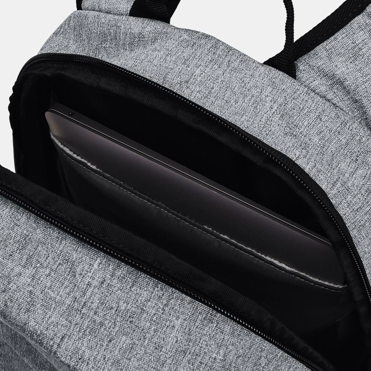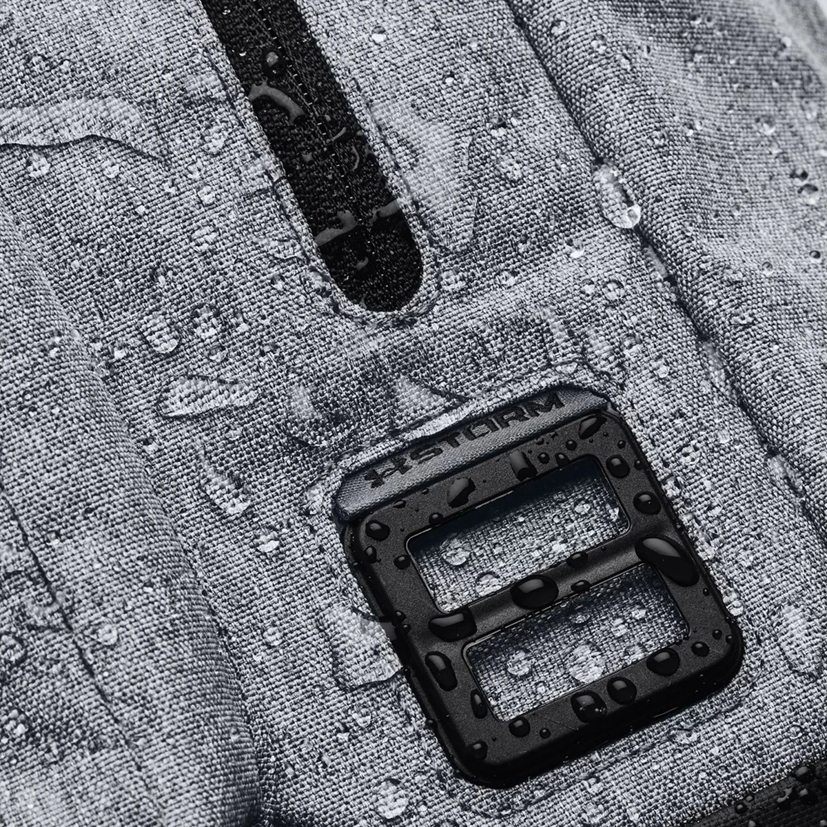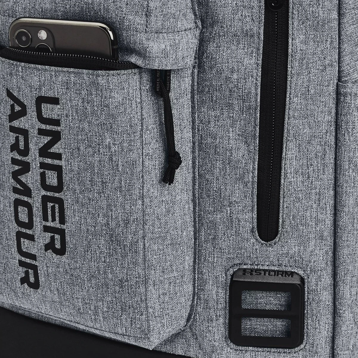 Specificaties: Vakken: groot hoofdvak met ritssluiting/ gevoerd laptopvak voor een laptop van maximaal 15 inch/ voorvak met ritssluiting en een klein vak op de voorzijde met ritssluiting (beiden waterafstotend) Waterbestendigheid: UA Storm-technologie heeft een waterafstotende werking Schouderbanden: twee verstelbare, gewatteerde schouderbanden en een draaglus/ ergonomisch gevormd Afmetingen: 30 x 48 x 16 cm (Inhoud: 22 liter) Kleur: grijs – zwart Materiaal: 100% polyester Extra informatie: de bodem is sterk en schuurbestendig