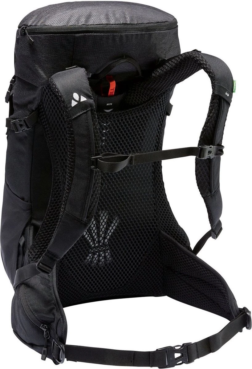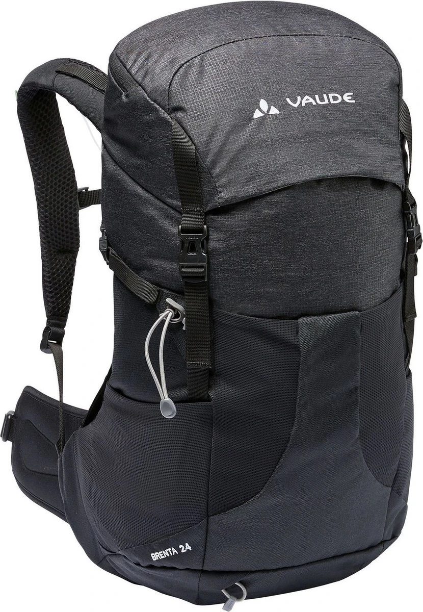 De weg is het doel! De Brenta 24 is een sportieve wandelrugzak voor dagtochten. Door diens innovatieve en zeer goed ventilerende Aeroflex 3D-rugpand, de ErgoShape-schouderbanden en de verstelbare ruglengte past hij zich snel en ongecompliceerd aan en laat zich op veeleisende tochten zeer aangenaam dragen. Compressieriemen zorgen voor stabiliteit in elke draagsituatie. Talrijke extra functies zoals het vak voor waardevolle spullen, het ruime stretchvak aan de voorkant, de bevestiging van wandelstokken, de ruimte voor een drinksysteem of de geïntegreerde regenhoes ronden de Brenta 24 af. Het basismateriaal van deze rugzak bestaat voor 50% uit gerecycled polyester, om onze grondstoffen te besparen. De rugzak is dankzij EcoFinish PFC-vrij waterafstotend. Het VAUDE Green Shape-label staat voor een milieuvriendelijk, functioneel product uit duurzame materialen.