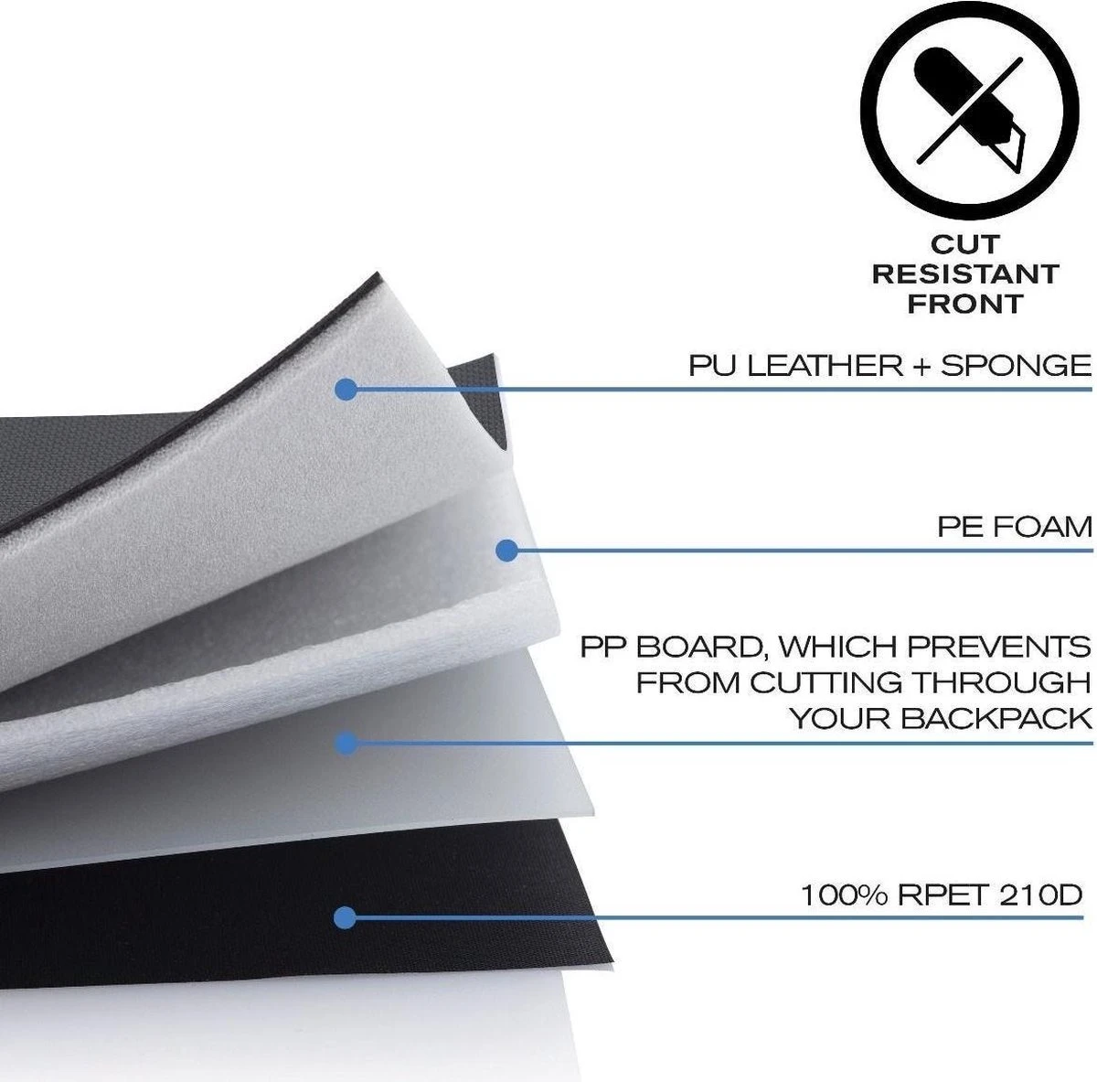 Veiligheid staat op nummer 1! XD Design staat bekend om hun anti-diefstaltassen, ook deze 13.3 laptoprugzak is er één van. De ritsopening van de tas zit aan de achterzijde, ook heeft deze tas nog meerdere verborgen ritsvakken. Op de achterkant van de tas zitten bijvoorbeeld nog twee ritsvakken. Zelfs in de schouderband zit er nog een ritsvakje. In de binnenkant van de tas zitten zes steekvakken, hier kan je je dagelijkse essentials in kwijt. Naast het 13.3 laptopvak zit er ook nog een 12.9 tabletvak. De schouderbanden zijn gewatteerd en verstelbaar, zo kan jij hem op de lekkerste manier dragen.HANDIG OM TE WETEN- Ritssluiting- Snijbestendig materiaal- Gewatteerde en verstelbare schouderbanden- Geïntegreerde USB oplaadppoort- Tabletvak- 13.3 laptopvak- 4 ritsvakken- 6 steekvakken