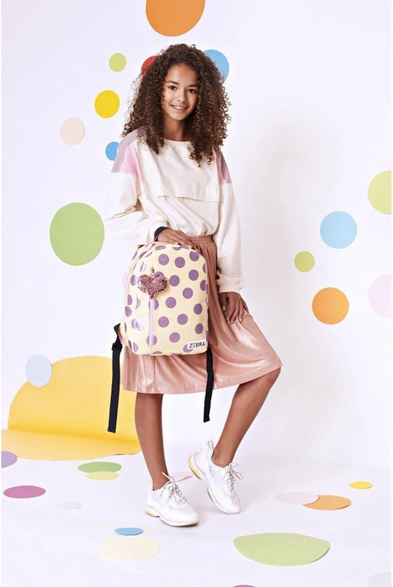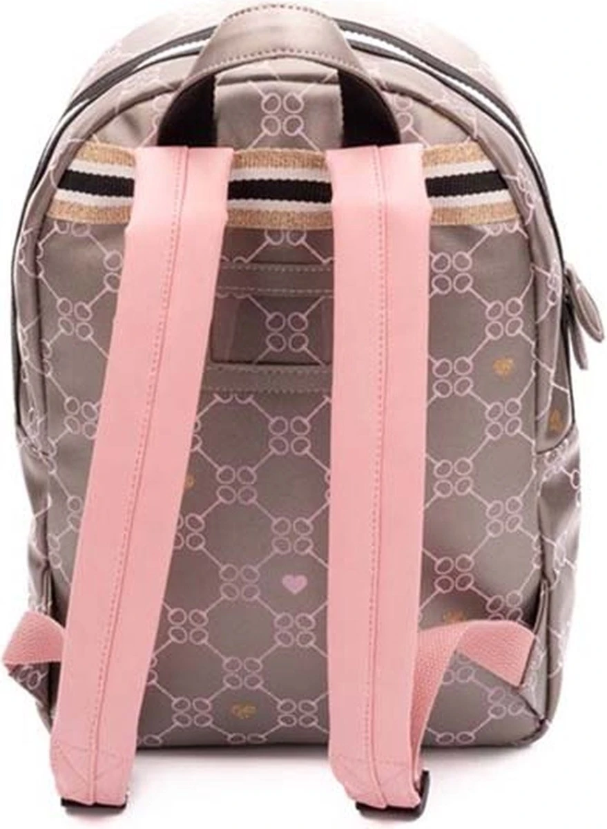 Grote rugzak met een subtiele horse bit print! Afgewerkt met stoere gouden banen en zacht soft pink velvet. De PU tas sluit met een blokrits met dubbele zipper. En heeft een stevig handvat en verstelbare schouderbanden van zwart kunstleer. Voorop zit een extra opberg vak, die sluit met een rits met Zebra sleutelhanger. Binnenin zit een gestreepte voering en bevinden zich 2 drinkbekervakken.